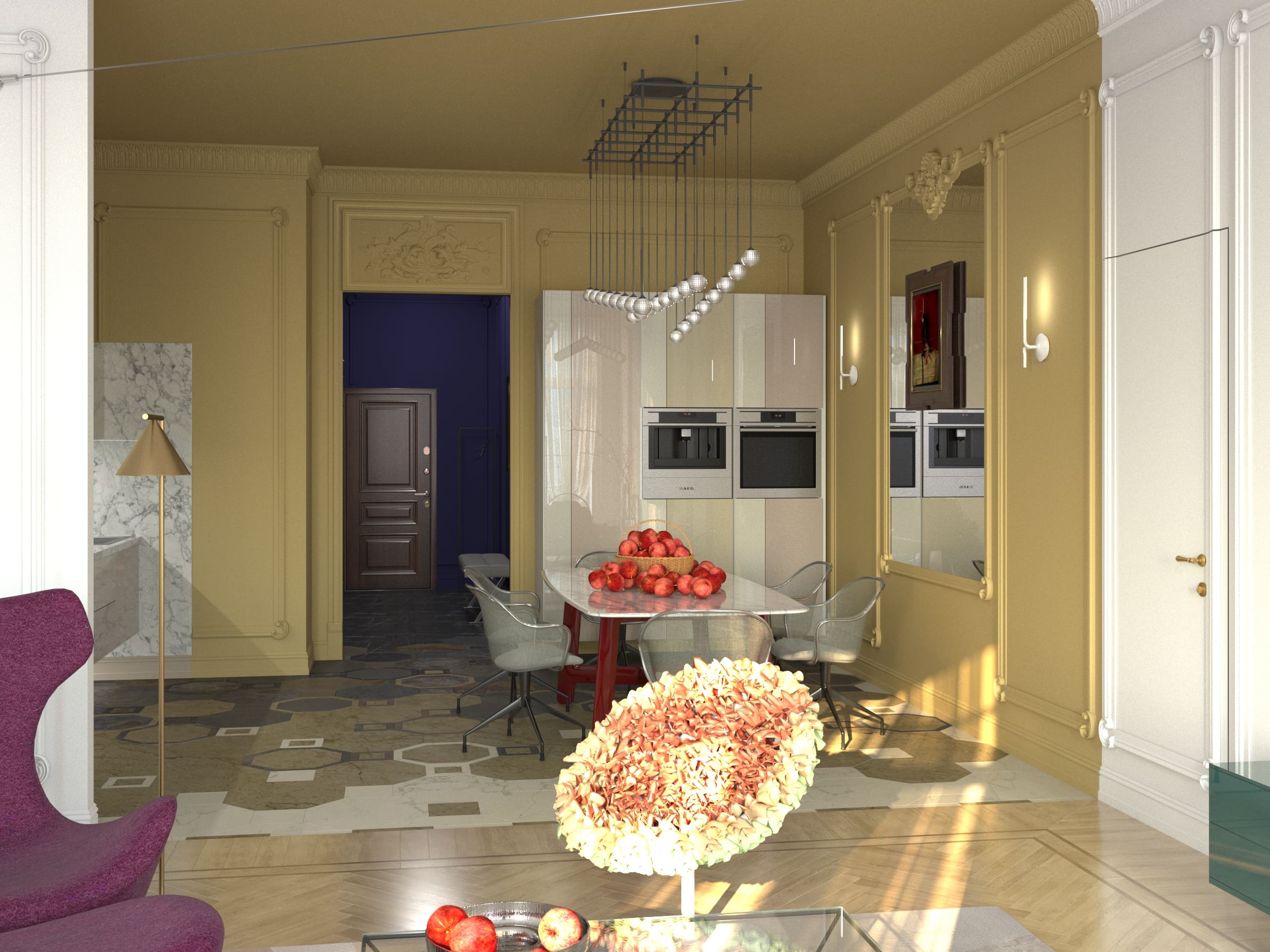 Интерьер проектировался для семьи из 2х взрослых человек. Квартира рассматривалась ими в качестве дополнительного жилья. Помимо этого, в ней планировалось проводить встречи, связанные с работой хозяев.
